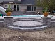 Interlocking Paver Patio, Retaining Wall, Raised Patio, Pool Surrounding, Columns, Drainage system |