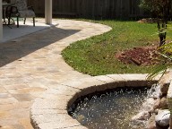 After,Friendswood, Texas, Belgards Interlocking Paver Patio, Flagstone walkway, Retaining wall and Fountain |